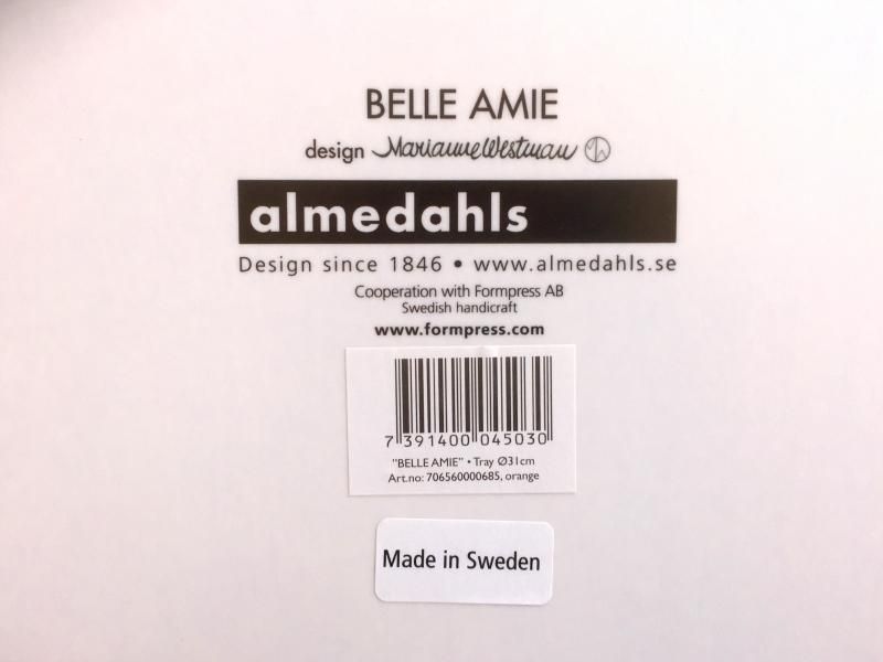 スウェーデン/almedahls アルメダールス/Belle Amie ベラミ/木製 ラウンドトレイ/31cm/オレンジ